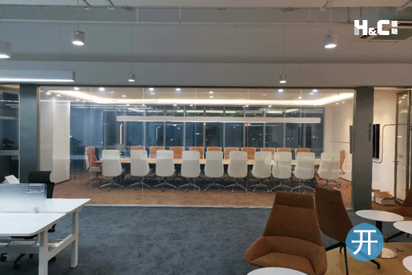 調光玻璃可作為寫字樓、酒店、機關單位、高檔住宅等場所的隔斷墻和門窗的應用。通電透明讓空間完全開放,斷電霧化營造私密空間,隨心控制空間開放狀態,提升空間舒適感。?