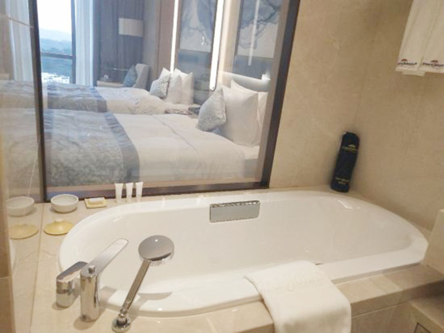 酒店方通過考察對比,最終選定了我公司的調(diào)光玻璃作為衛(wèi)浴玻璃隔斷的供應商,總量約800平方米,應用于200多間客房,給入住的賓客帶來新鮮的體驗。
