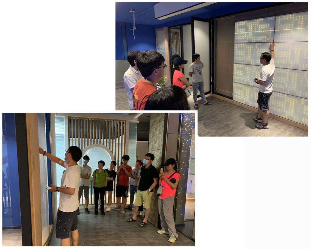 活動之后,設計師們來到匯馳公司的展廳,了解調光玻璃、LED發光玻璃等產品的最新工藝和發展前景。大家一邊看一邊提問,指出產品應用可能存在的問題,并對產品的研發和應用提出新的要求。