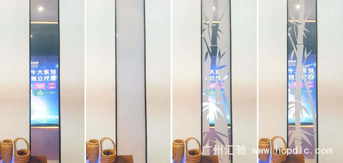 玻璃還是霧化玻璃,只是在原霧化玻璃的基礎上,設計出透明或霧化的圖案區域,再通電控制需要顯示的區域,玻璃就可以有“透明——霧化——顯示圖案”三種基本狀態了。圖案可以是單個圖案,也可以是多種圖案組合,圖案可以靜止,也可以變化,這樣就會有多種展現效果了。