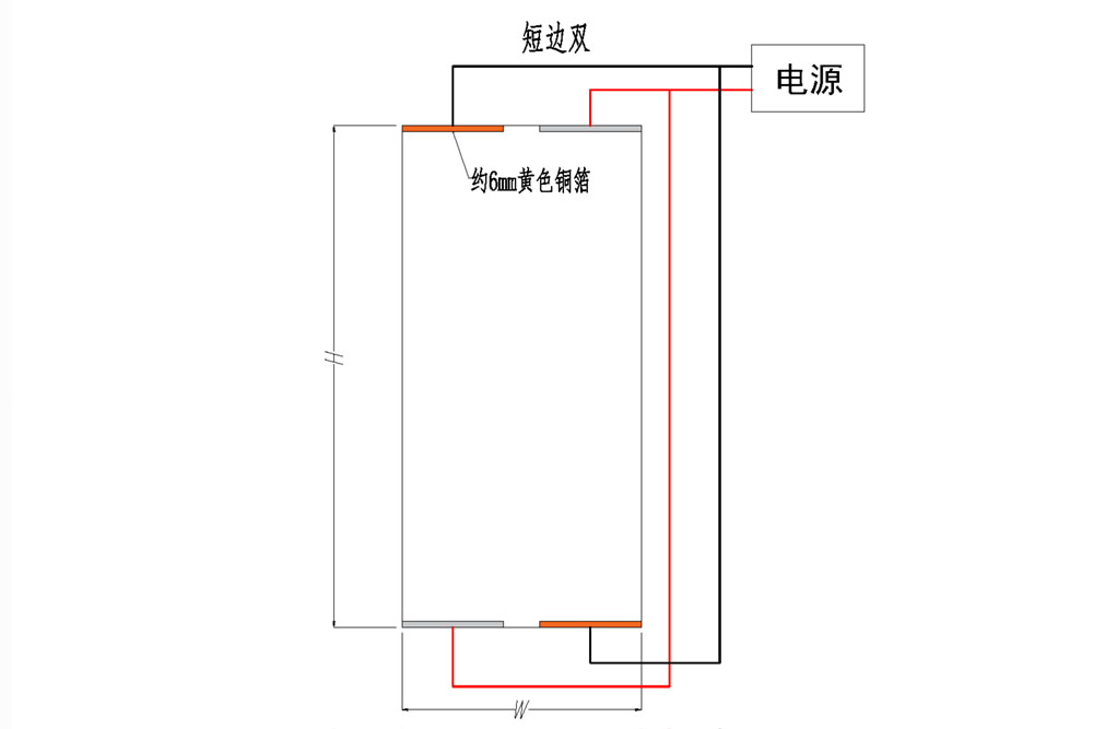 雙電極就是一片玻璃設兩組電極,共4條線(同時提供另外兩組備用線)。雙電極可以開在兩條短邊,也可以開在某一條長邊,視玻璃大小而定。