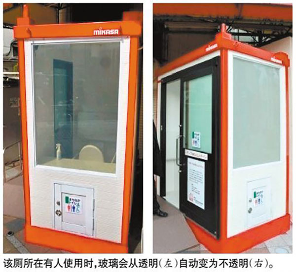 在日本大分市中心商業街街頭有一個應用霧化玻璃的公廁(如下圖)。當廁所里面沒人時,從外面看一覽無余,有人進入后,廁所里的傳感器就會感應,讓玻璃變霧化。
