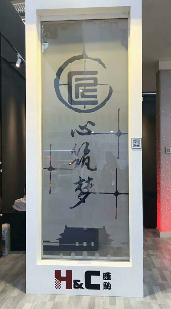 我司此次展示的分區調光玻璃有3大片,其中最吸引觀眾的就是這片玻璃。“匠心筑夢”4個字,反映了當今企業發展所需的專注、求精和堅持的工匠精神,也表明了我公司對產品的態度。而天安門廣場的圖形,則表示我們這次展會的地點是北京。
