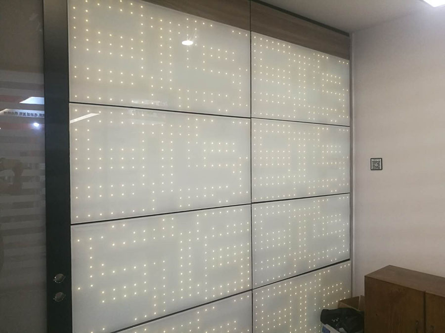 以玻璃為基礎,配合各種材料和先進工藝生產的LED發光玻璃,采用呼吸式發光控制,點綴空間,塑造氣氛,給人一種神秘感。